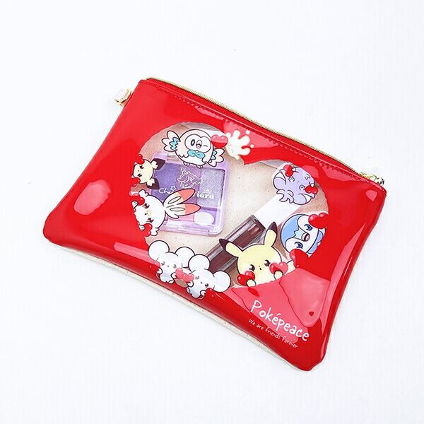 可愛いイラストデザインのフラットポーチです。小物やコスメやポケカを入れるのにぴったりなサイズ感◎ハートの部分が透明になってるから中に何が入っているかすぐわかる!同シリーズもございますので揃えてみませんか♪
