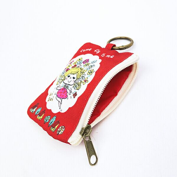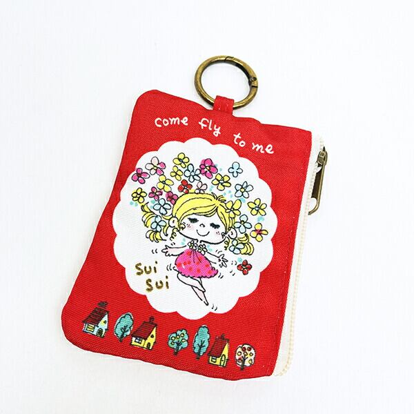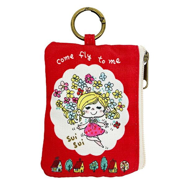 水森亜土 カラビナ付きポーチ ハナ(レッド)
