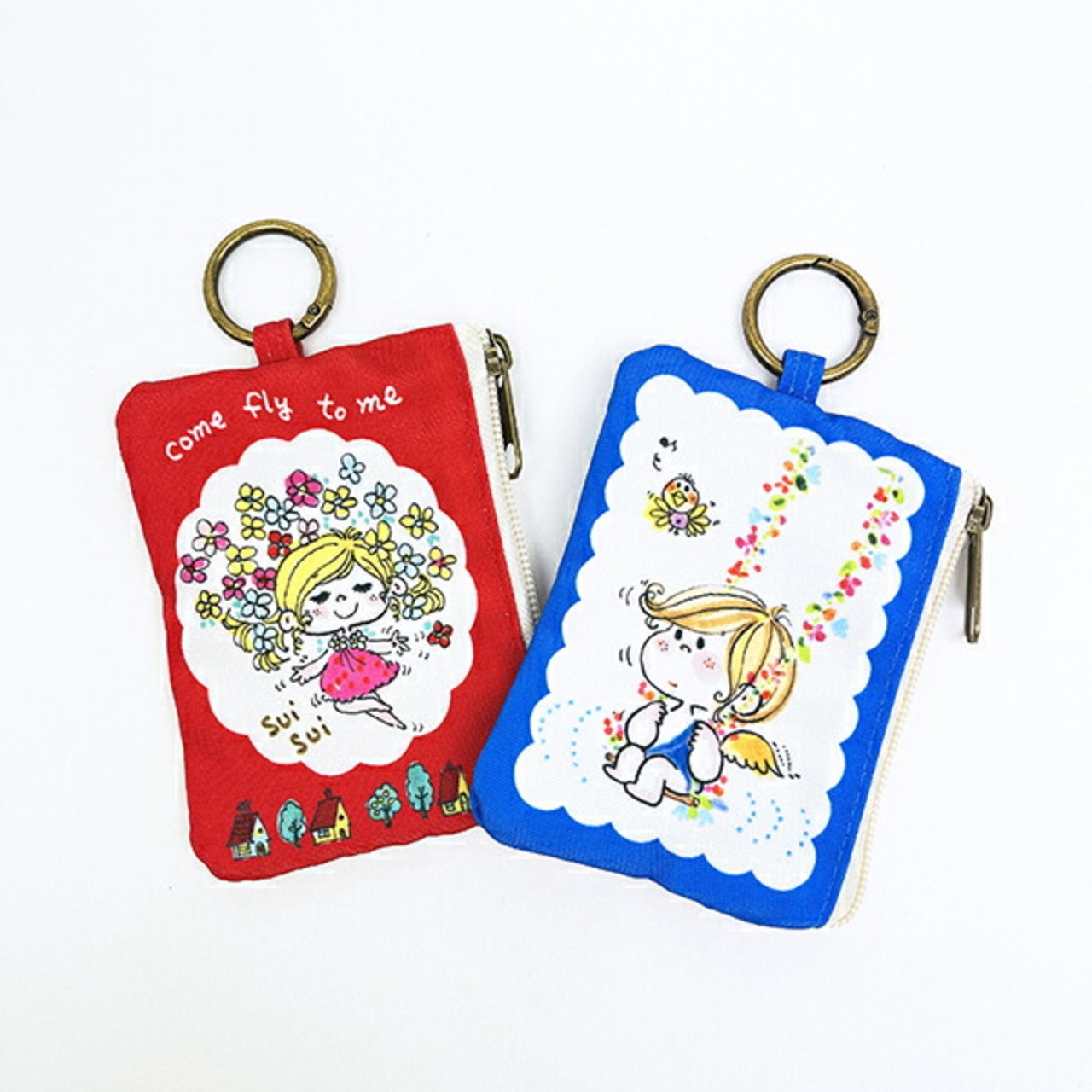 水森亜土のカラビナ付きポーチです。ICカードや小銭、ちょっとした小物を入れるのに便利☆カラビナ付きなのでバッグなどに付けて持ち運べます♪とっても可愛らしいデザインなので亜土ちゃん好きの方へのプレセントにもおすすめです☆彡