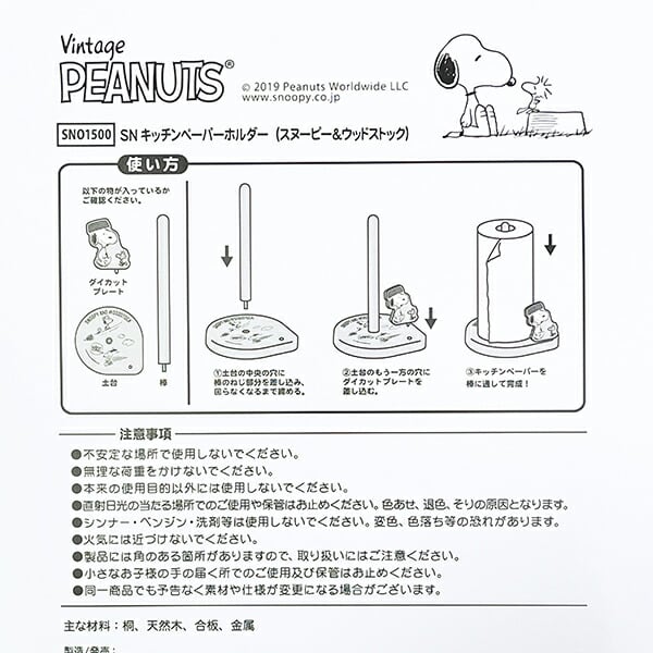 スヌーピーのキッチンペーパーホルダーです。工具不要で差し込むだけで簡単に組み立てできます◎キッチンのかわいいアクセントに♪