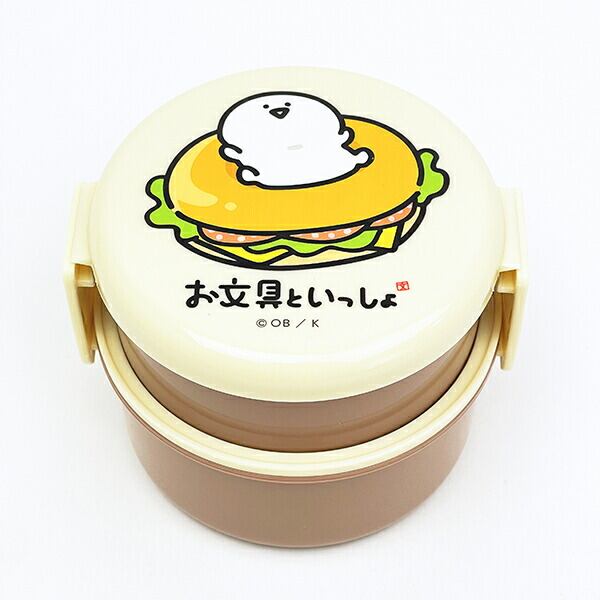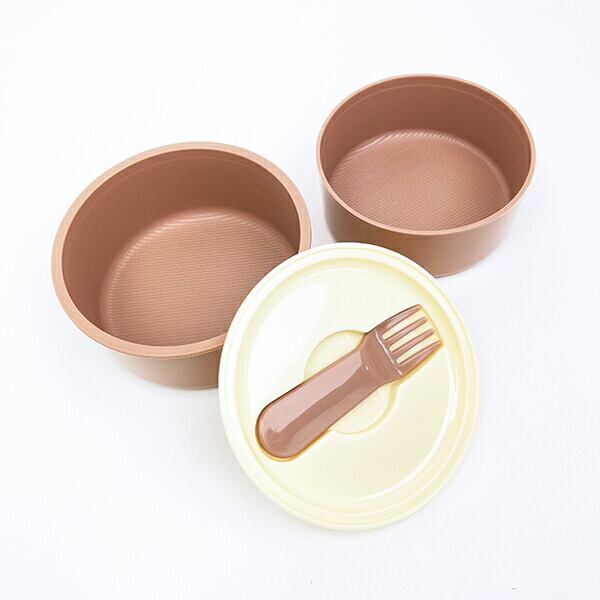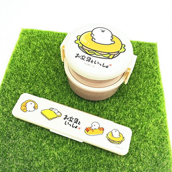お文具といっしょ 丸型ランチボックス2段(フォーク付) 日本製