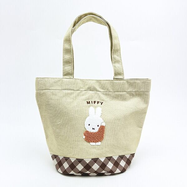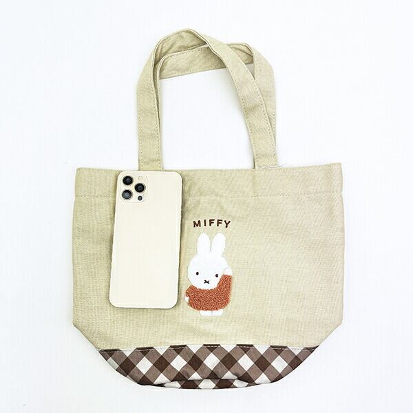 ミッフィー miffy ミニトートバッグ ベージュ ダイアゴナルチェック ランチ