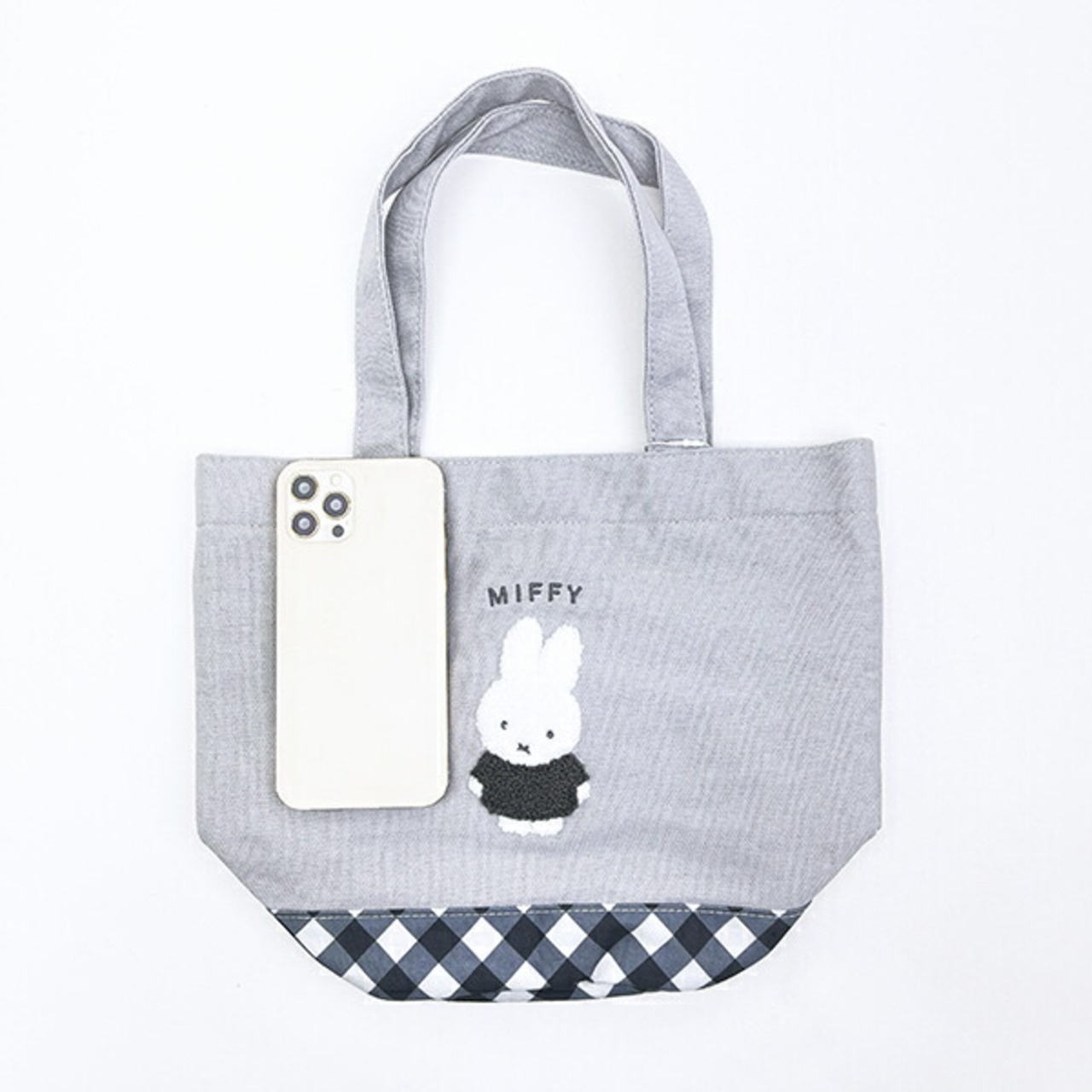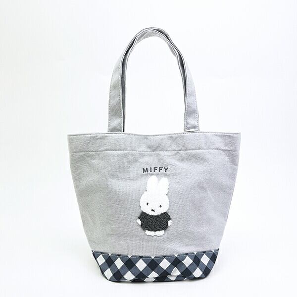 ミッフィー miffy ミニトートバッグ グレー ダイアゴナルチェック ランチ
