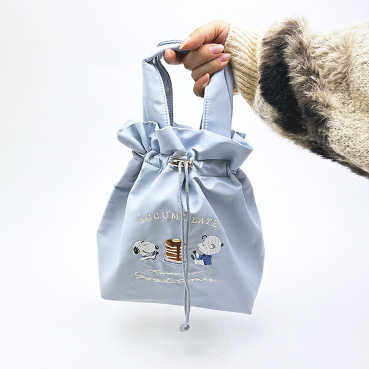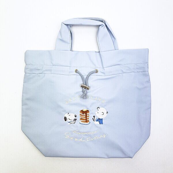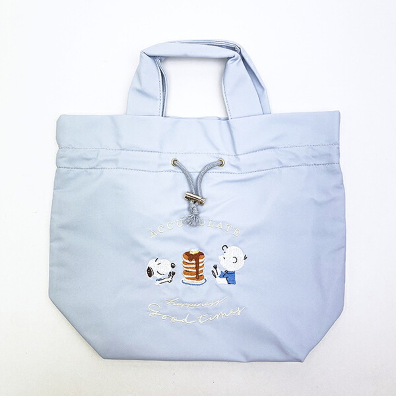 ホットケーキがおいしそう〜♪なスヌーピーの保冷ランチ巾着です♪夏場もこのバッグにお弁当を入れれば、安心♪スヌーピーと一緒に楽しいランチタイムをしましょう☆彡