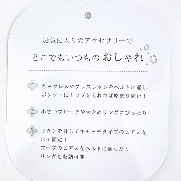 お気に入りのアクセサリーでどこでもいつものオシャレなスヌーピーのアクセサリーポーチです。ネックレスやブレスレットをベルトで通しポケットにトップを入れれば絡まり防止できます!小さいブローチや大きめリングにぴったり☆彡ボタンを外してキャッチタイプのピアスを穴で固定!フーブのピアスをベルトに通したりリングも収納可能♪お仕事やプールなどに外さなきゃいけないときに便利アイテムです♪