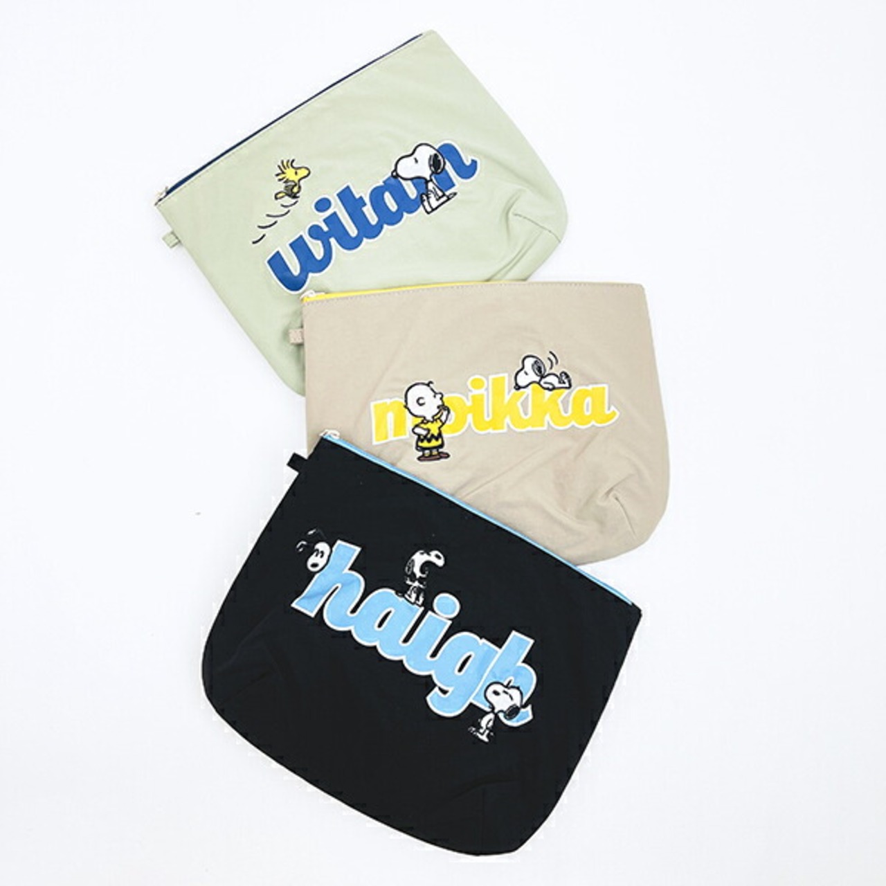 チャーリーブラウンのフラットで使いやすいポーチです。アップリケ刺繍が可愛い♪内側には大小のポケットが2つ付いていて収納も便利☆大き目サイズなので、旅行などにもで活躍すること間違いなし♪スヌーピー好きの方へのプレゼントにもおすすめです☆彡