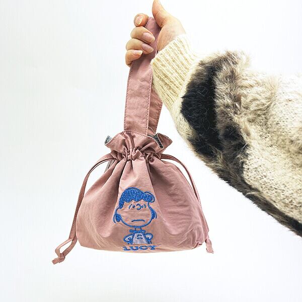 スヌーピー ルーシー 巾着バッグ アップリケ刺? ランチ SNOOPY