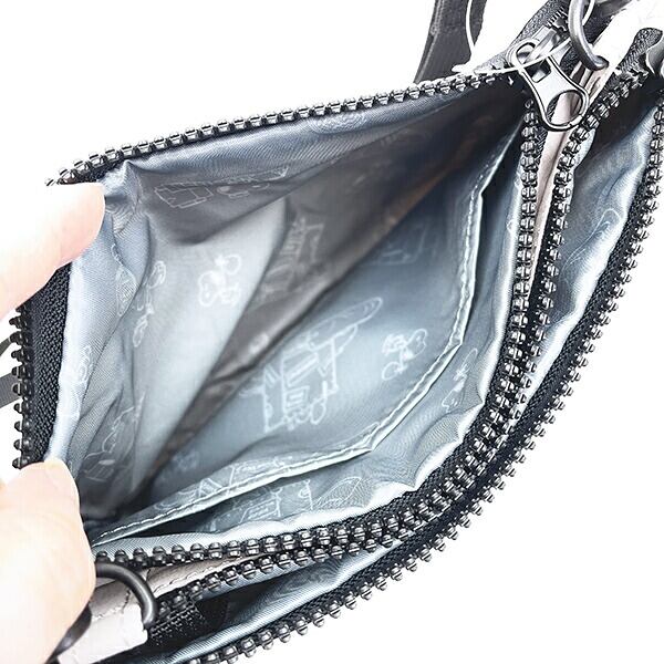スヌーピーの2ルームショルダーバッグです♪コンパクトサイズですが、収納部が2つありポケットも多数あるので収納力は抜群◎カギなどに便利なフックがついていたり外側にもポケットがあり、とっても便利♪肩紐は取り外し可能で、男女問わず使っていただけます☆彡