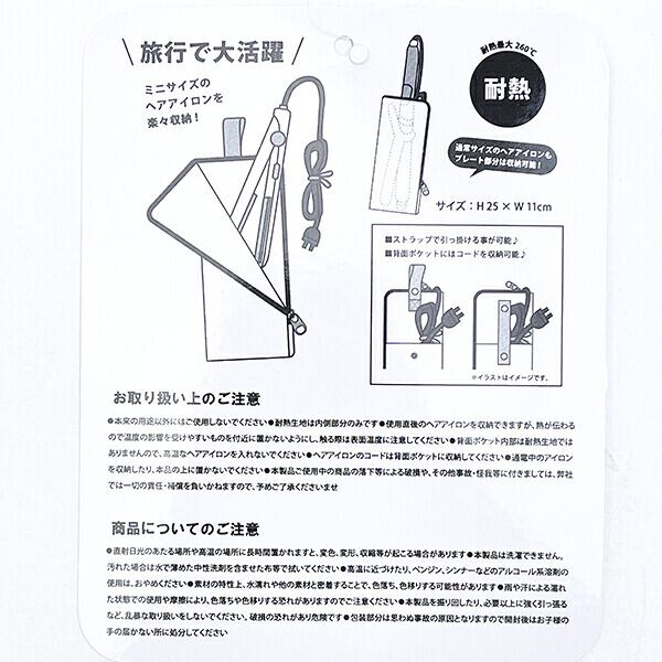 スヌーピーのコミックデザインが可愛い耐熱ポーチです。耐熱最大260℃!ミニサイズのヘアアイロンを楽々収納♪通常サイズのヘアアイロンもプレート部分は収納可能です!背面のポケットにコードを収納できたり、ストラップで引っ掛けることができちゃいます♪旅行などのお出かけ時に大活躍すること間違いなしです☆彡