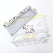 スヌーピーの旅行で大活躍間違いなしのポーチ2個セットです。ミニサイズはメッシュ素材で通気性バツグン◎大きいサイズも濡れてもサッと拭けて衛生的◎ちょっと困ったお顔のスヌーピー達がとってもキュートなデザインです♪【サイズ】:約230x160x60mm(M)、約200x80mm(S)
