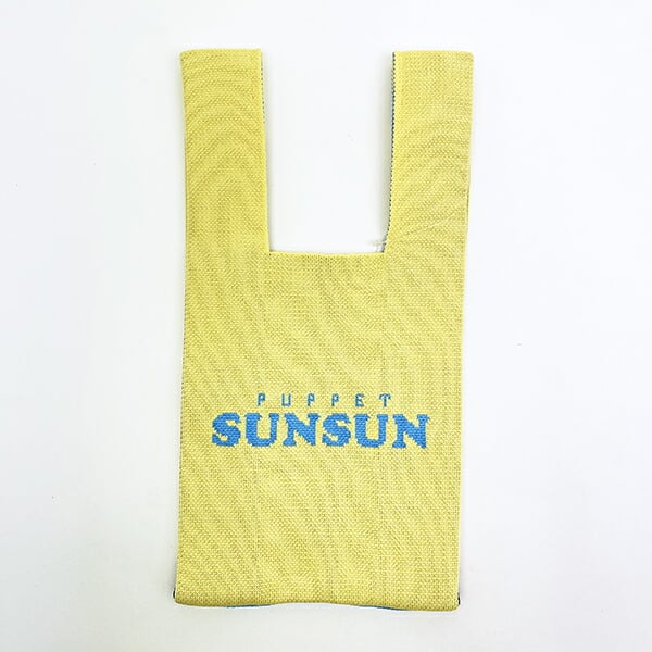 パペットスンスンのニットトートバッグです。柔らかい素材で使い勝手が◎500mlのペットボトルが入ります!エコバッグやサブバッグにぴったりです☆