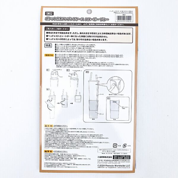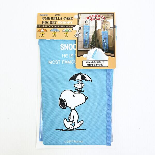 スヌーピー ポケット付きアンブレラケース ブルー カー用品