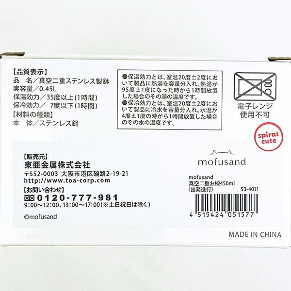 モフサンド 真空二重お椀 (450ml) 出発進行 食器 mofusand