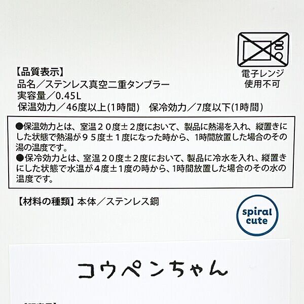 コウペンちゃんのステンレスタンブラーです。保冷・保温効果があり、アイスドリンクもホットドリンクも注げます♪コンビニやコーヒーショップのドリンクカップがすっぽりと入るので、カップホルダーとしても◎ボックス入りでギフトにもぴったり♪普段使いしやすい大きさで、お家でもオフィスでも活躍してくれますよ☆彡
