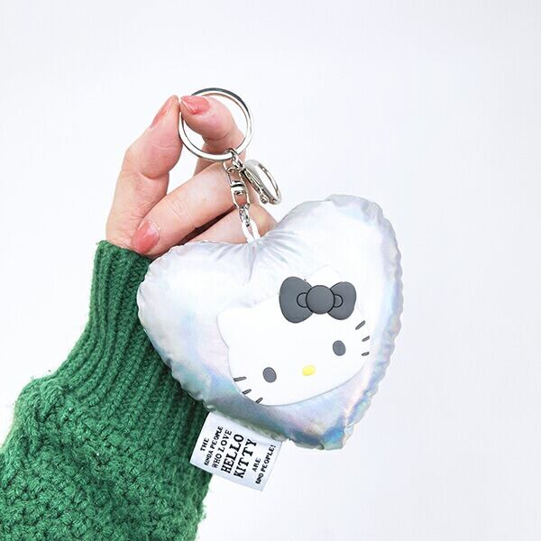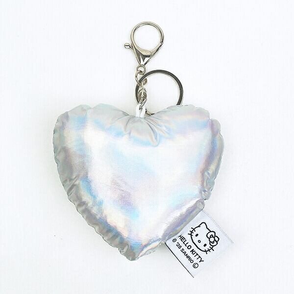 ハローキティのハート型のクッションキーホルダーです。鍵などを一緒に付けても◎キラキラ輝いていて存在感抜群☆バッグなどに付ければアクセントにもなっちゃいます♪