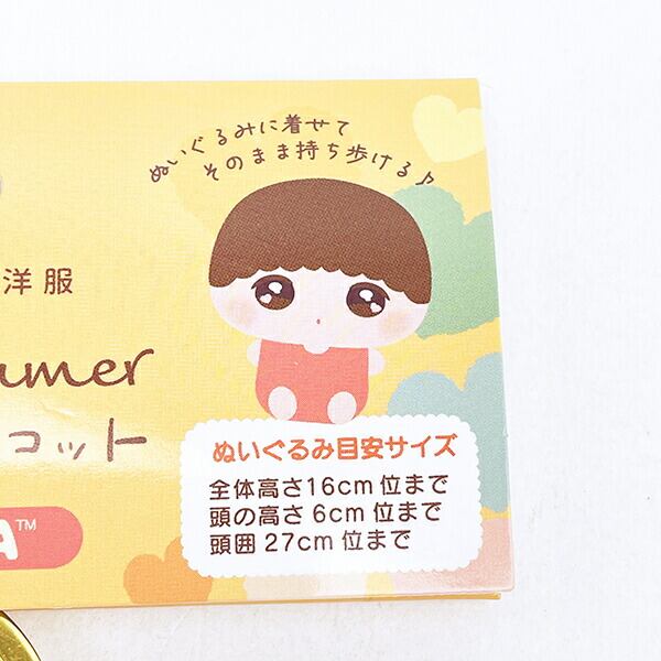 プラッシュコスチューマーさんのぬいぐるみ用のコスチュームです。こちらはリラックマデザインです。●コスチューム本体 高さ:約15cm ●ぬいぐるみ適用サイズ 頭位24cm位まで/ボディ高さ8?位まで/ぬいぐるみ全体高さ14?位まで