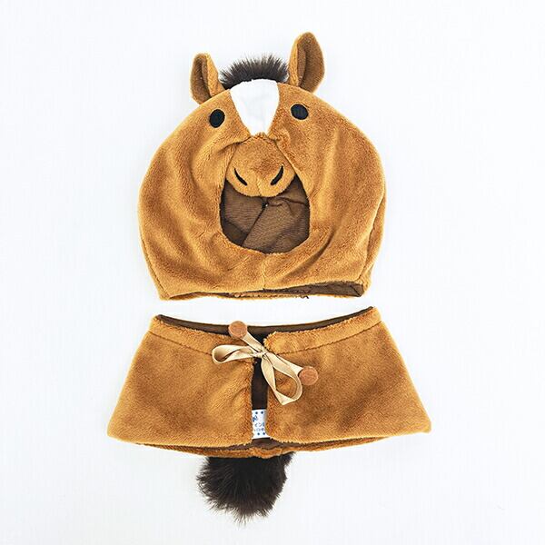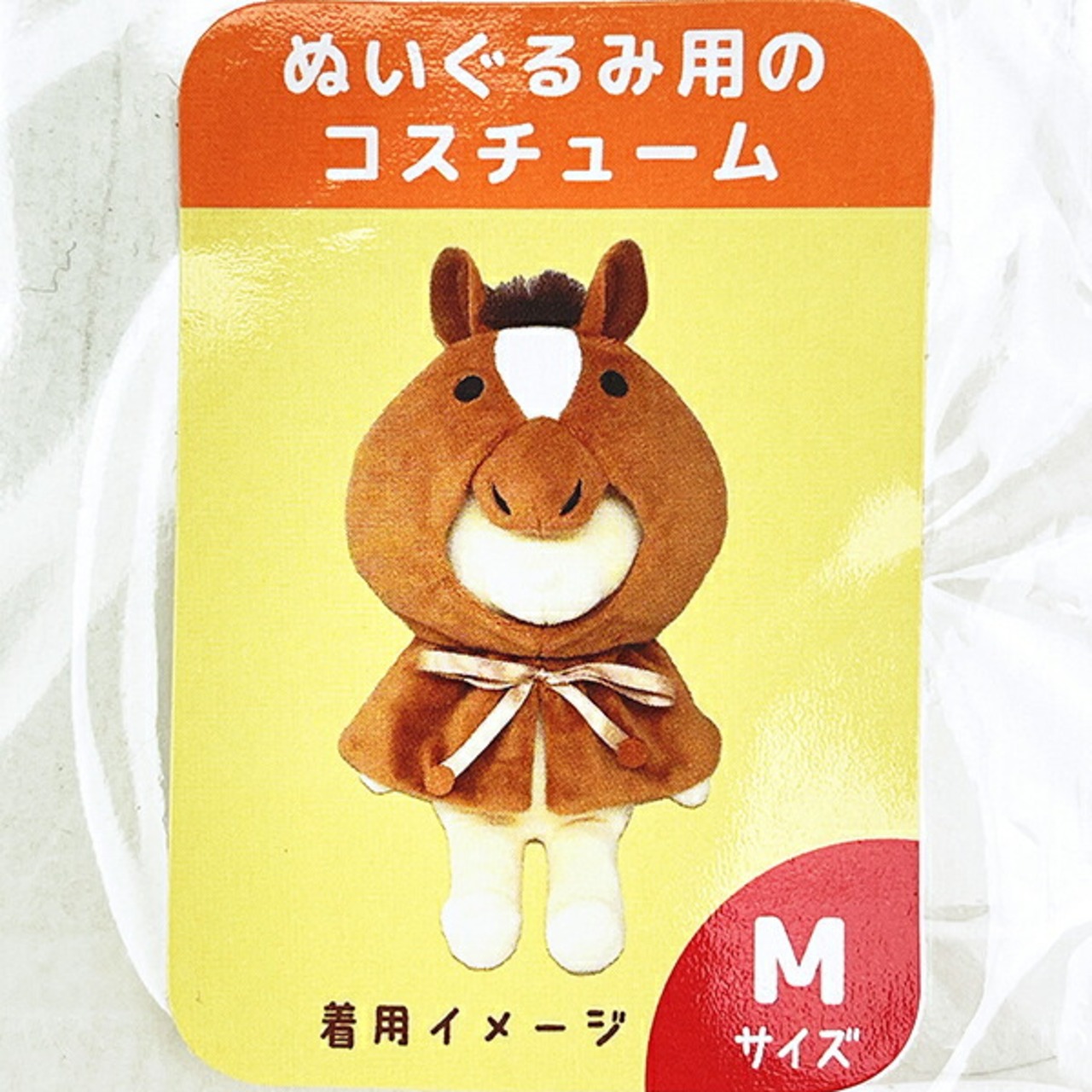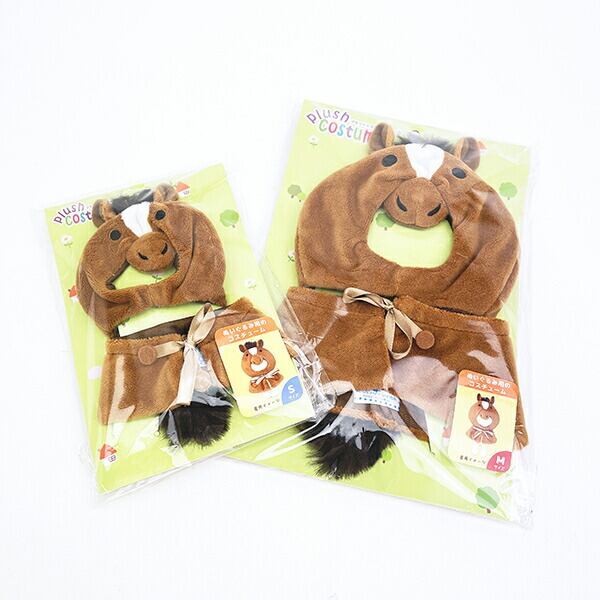 プラッシュコスチューマーさんのぬいぐるみ用のコスチュームです。こちらは馬デザイン。ふさふさのたてがみとしっぽがチャームポイント♪【Mサイズ 頭囲:31?位まで胸囲:26?位まで首周り:28?位まで首からおしり:12?位まで】