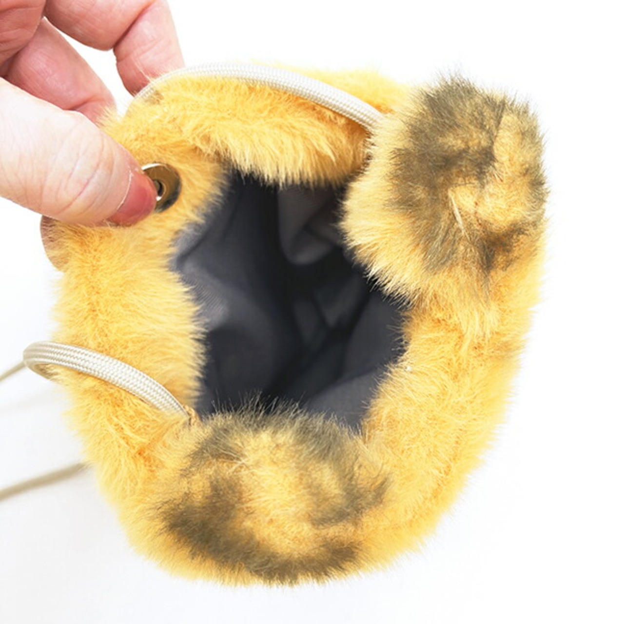 飛んでいきそうなほどの儚いふわふわ感のわたぽシリーズ。ずっと触っていたくなる肌触りです。紐はサイズ調整ができて嬉しい♪スナップボタン付なので中身が落ちにくいのも◎