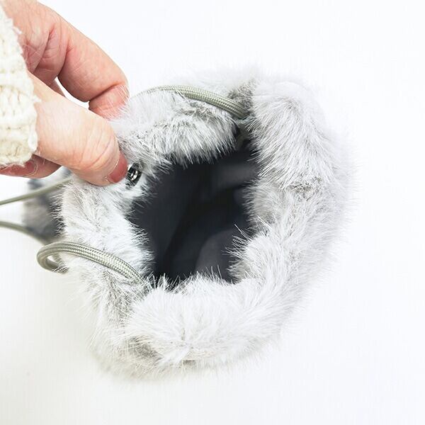 飛んでいきそうなほどの儚いふわふわ感のわたぽシリーズ。ずっと触っていたくなる肌触りです。紐はサイズ調整ができて嬉しい♪スナップボタン付なので中身が落ちにくいのも◎