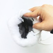 飛んでいきそうなほどの儚いふわふわ感のわたぽシリーズ。ずっと触っていたくなる肌触りです。紐はサイズ調整ができて嬉しい♪スナップボタン付なので中身が落ちにくいのも◎