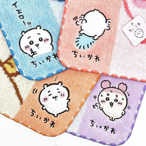 タオル生地のハンカチです。ちいかわのデザインが可愛くワンポイントの刺繍がアクセント!!