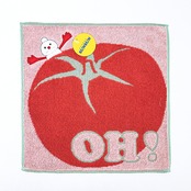 トマトに乗っているノンノンのデザインのタオルハンカチです。ガーゼのさらりとした優しい肌ざわりと、パイルのふわふわやわらかい肌ざわりの両方が味わえる◎やわらかいガーゼパイル触り心地が魅力で、ご自分用はもちろん、ご友人へのプレゼントなどにもおすすめです★