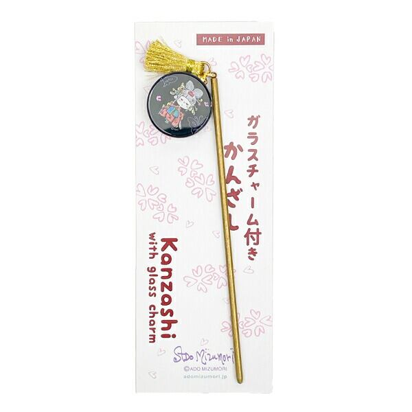 水森亜土 和雑貨ガラスチャーム付きかんざし オイラン ブラック 髪飾り