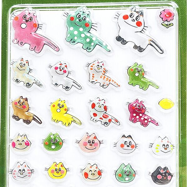 内藤ルネ キャット グリーン ぷくぷくジェリーシール 立体シール 文具