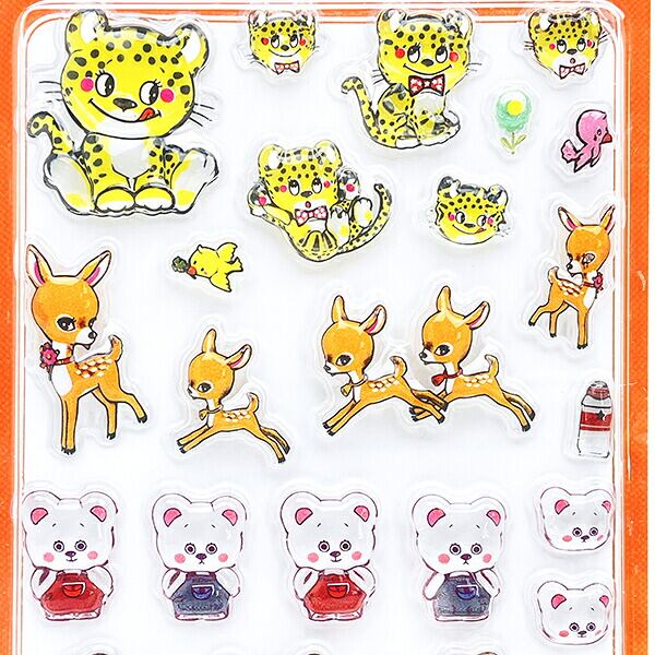 内藤ルネ アニマル オレンジ ぷくぷくジェリーシール 立体シール 文具