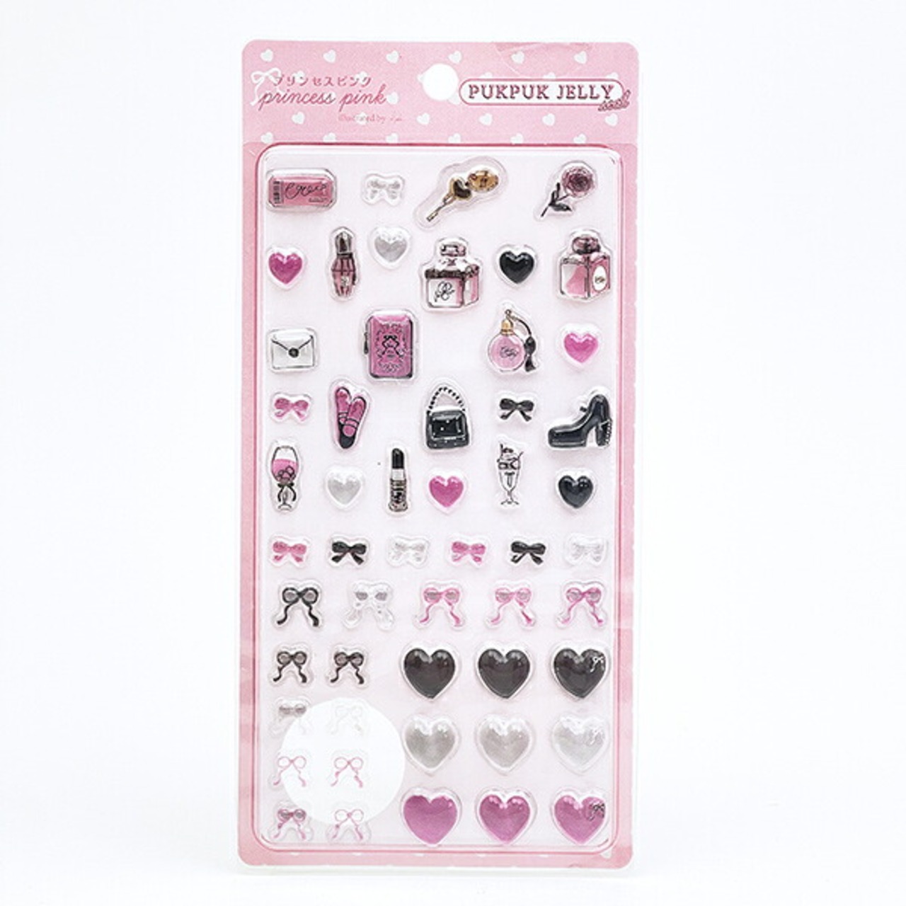 コスメやバッグ、リボンなど女の子が好きなアイテムが大集合!プリンセスピンクのぷくぷくジェリーシールです。ノートや手帳、スマホカバーのデコレーションにぴったり♪♪社会現象ともなったシールブームの今、ぜひあなたのコレクションに追加してあげてください☆彡