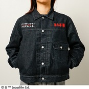 シスが背面に刺繍されているジージャンです。しっかりしたジーンズ生地でカッコよく着られます。【サイズ】チェスト:96〜104cm、身長:165〜175cm