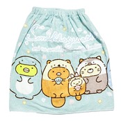 すみっコぐらしのプールスカートタオルです。綿素材で吸水性もよく、お手入れしやすく、ネームタグ付きなので保育園などで活躍すること間違いなし♪サイズを2段階調整できるので長く使えて嬉しい☆プール用にはもちろん、お風呂上りなどにも使えます♪