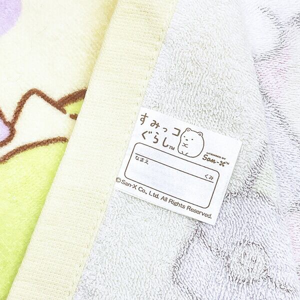 すみっコぐらしのプールスカートタオルです。綿素材で吸水性もよく、お手入れしやすく、ネームタグ付きなので保育園などで活躍すること間違いなし♪サイズを2段階調整できるので長く使えて嬉しい☆プール用にはもちろん、お風呂上りなどにも使えます♪