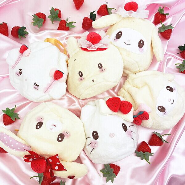 マロンクリームのふわふわ素材のフェイス巾着です。マチ付きなので小物の持ち運びにも便利☆愛らしい表情がとてもキュートな巾着です♪