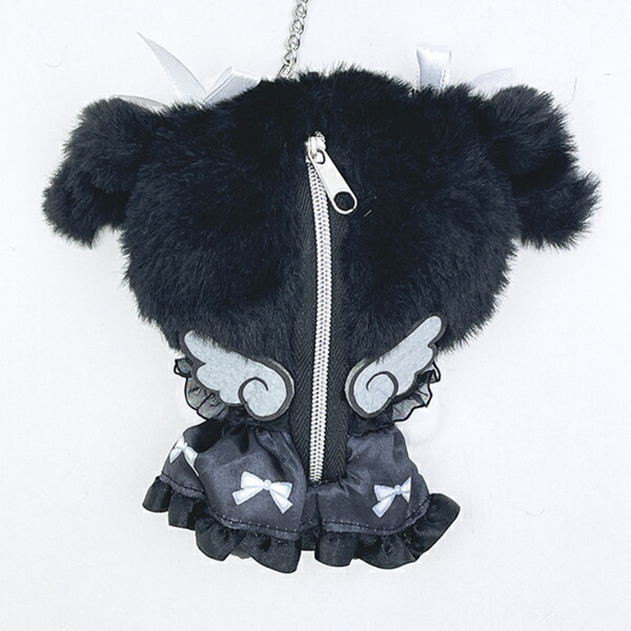 ぬいぐるみの後ろにチャック付きのポケットがあるポーチです。カラビナ付きなのでバッグに付けやすい♪