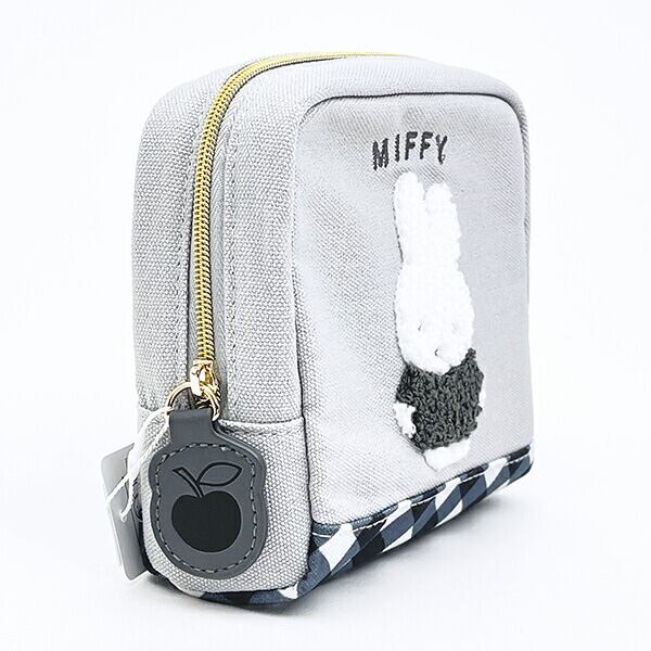 ミッフィー miffy ボックスポーチ グレー ダイアゴナルチェック