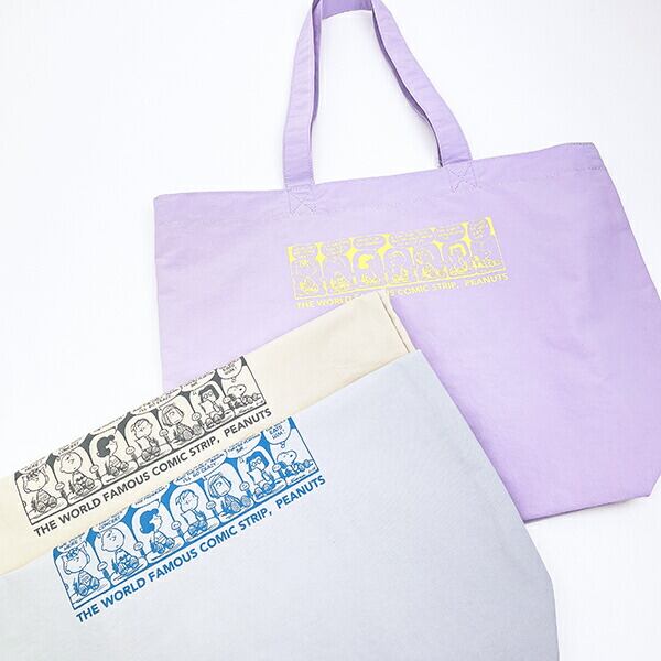 スヌーピーの大容量、トートバッグです♪スヌーピーたちが楽しそうな絵柄とくすみカラーもキュート♪マチもしっかりあり、軽量で薄手なので折りたたんで持ち運びできる!旅行や荷物が増えた時にも◎肩掛けしやすく、便利な内ポケット付きなのも嬉しい☆彡