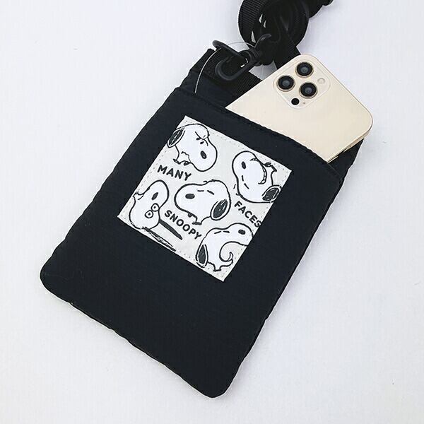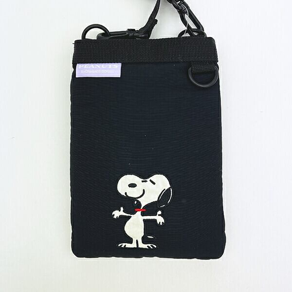 スヌーピー リップストップ フラットスマホショルダーバッグ ブラック SNOOPY