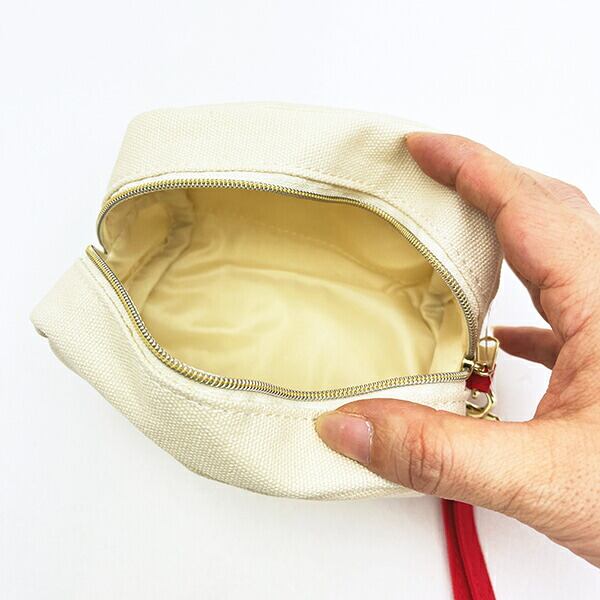 レトロチェリーシリーズのワッペンミニポーチです。 素材が綿で温かみのあるポーチ♪ チャック部分に取っ手があり、使いやすい仕様☆彡