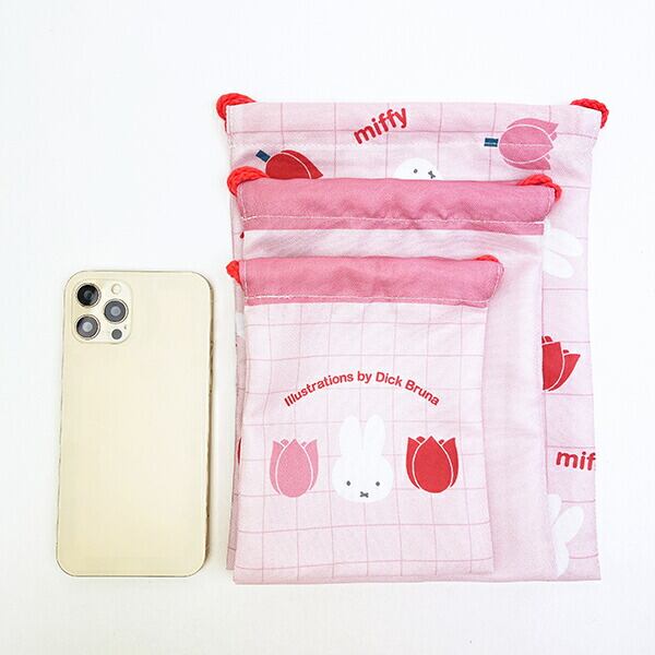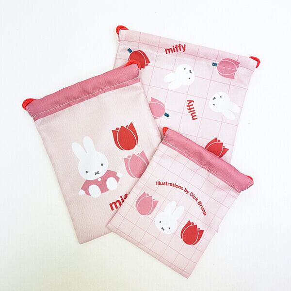 ミッフィー miffy 3P巾着 (ピンク) strawberry&tulipシリーズ