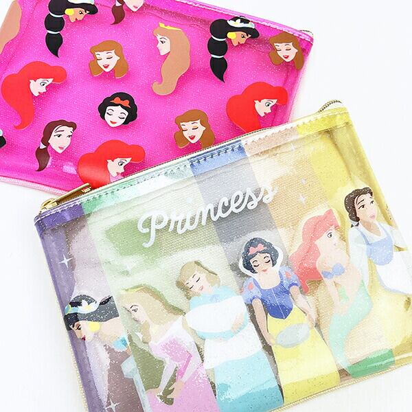 ディズニープリンセスが大集合しているデザインのクリアポーチです。中身が見えるので、入れた物を一目で確認できます♪お出かけなどのトラベル用品を入れるのにもおすすめ★