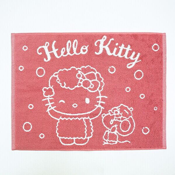 綿100%のしっかりとしたバスマットです。しっかりと水分を吸ってくれます。ハローキティのカワイイイラストもポイントです。