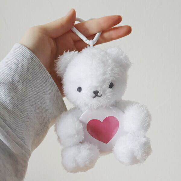 あなたの代わりにベアが大切にハグしてくれます。可愛いハート型のカラビナ付きで、バッグやリュックにも簡単に取り付け可能。さらに、お座りできるデザインなので、お部屋に飾って推しグッズと一緒に楽しむのもおすすめです。あなたの推し活の時間が、もっと楽しく、もっと愛おしいものになりますように。※缶バッジは付属しておりません。