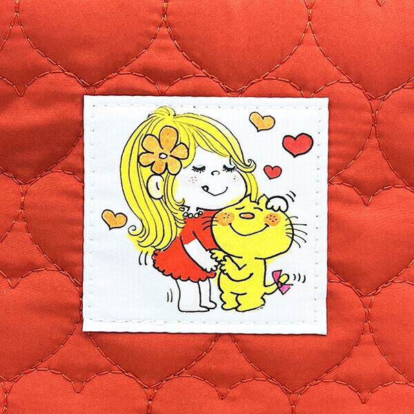 水森亜土のキルティング生地のランチバッグです。内側は保温・保冷効果のあるアルミ蒸着素材!保冷剤などを入れられるメッシュポケット付きが嬉しいポイント♪ハートキルティングがとっても可愛いのでランチバッグとしてはもちろん、ちょっとしたおでかけで持っても可愛いです☆彡
