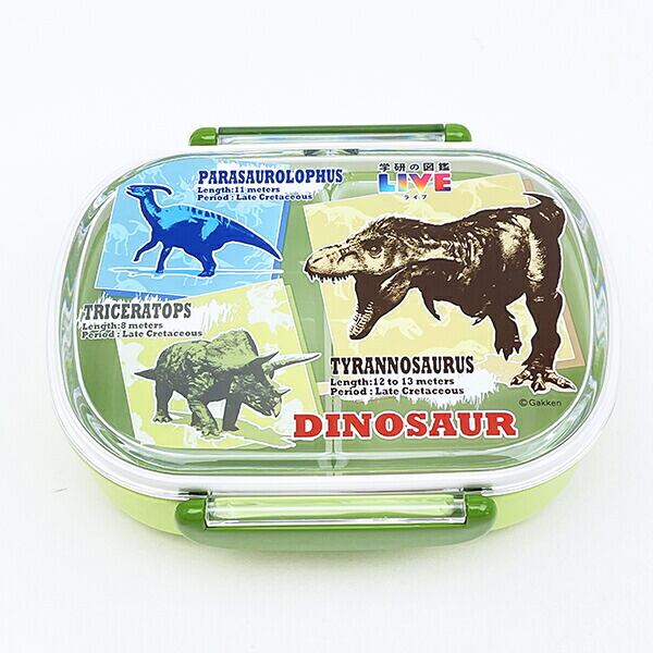 お子様に大人気「学研の図鑑LIVE」の恐竜柄ランチボックスです。ランチ用にはもちろん、ピクニックなどのアウトドアにぴったり☆人気のティラノサウルスやトリケラトプスなど見ているだけでもワクワクするデザインがgood??小さいお子様も喜ぶこと間違いなしです!!食洗機・フタを外して電子レンジ使用可◎【容量:360ml】