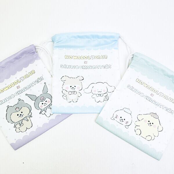 ほわほわで可愛いほわころくらぶ×サンリオキャラクターズの巾着です。くしやワックスなどの小物を入れても◎旅行やお泊りなどで大活躍すること間違いなし!いつもと違うサンリオキャラクターたちが楽しめちゃいます♪