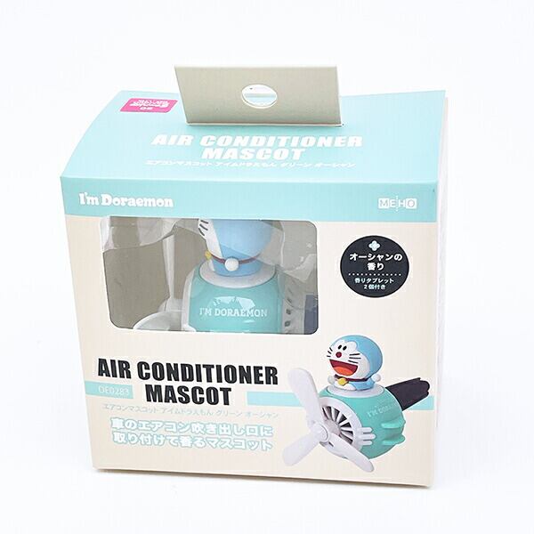 ドラえもんのエアコンマスコットです。車のエアコン吹き出し口に取り付けてお使いいただけます☆オーシャンの香りタブレット2個付きが嬉しいポイント!プロペラの回転で香りが広がります♪車内がいい香りになっちゃう可愛いマスコットです☆