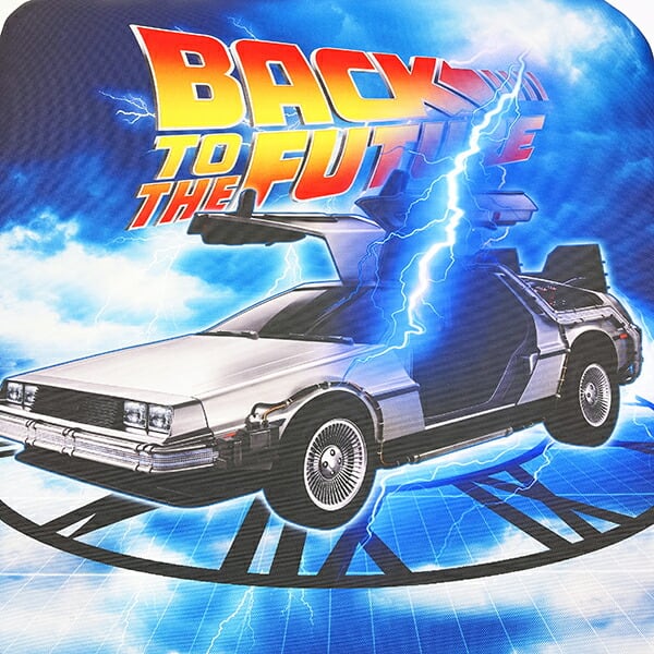 バックトゥザフューチャーの車用シートクッションです。長時間の移動もこれさえあれば安心☆かっこいいデザインなのでドライブのお供にいかがですか?