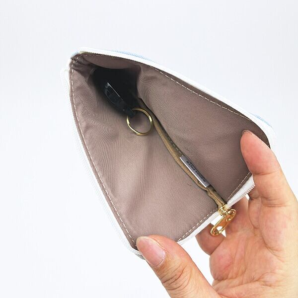 キーホルダーが付いた便利なポーチ。裏側にはカードが2枚入り、ホルダー部分が伸びるので、カバンに付けたままで改札を通れちゃいます♪