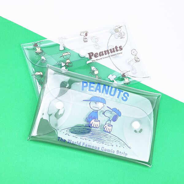 スヌーピーのクリアマルチケースL。マスクや文房具、パスポート入れなど水濡れに強く汚れてもサッと拭ける素材です♪